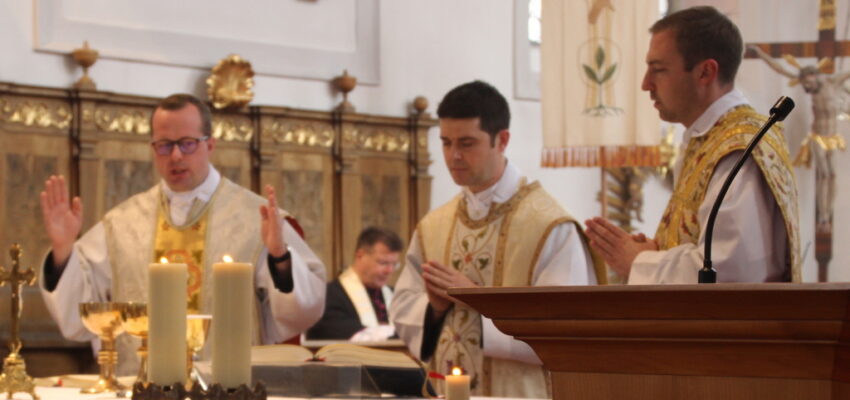 Drei Jahre lang wirkte Pater Jason in der Pfarreiengemeinschaft Obergünzburg. Am 30. September endete sein Kaplansdienst. Künftig wird der charismatische Geistliche im entfernten Kasachstan den christlichen Glauben und christliche Werte weitergeben. (…) Christina Bongartz (Kirchenverwaltung) wünschte dem „Känguru in der Lederhose“ alles Gute und spielte damit auf die australische Herkunft Pater Jasons sowie seine Offenheit für den Allgäuer Dialekt an. (…) Allen Rednern war es aber auch wichtig, Pater Stephan [Wachsenberger] in seinem neuen Wirkungskreis herzlich zu begrüßen und ihm alles Gute zu wünschen. Zum Abschluss der Messe segnete Pater Michael seine beiden Kapläne einzeln am Altar für ihre weitere Aufgabe.