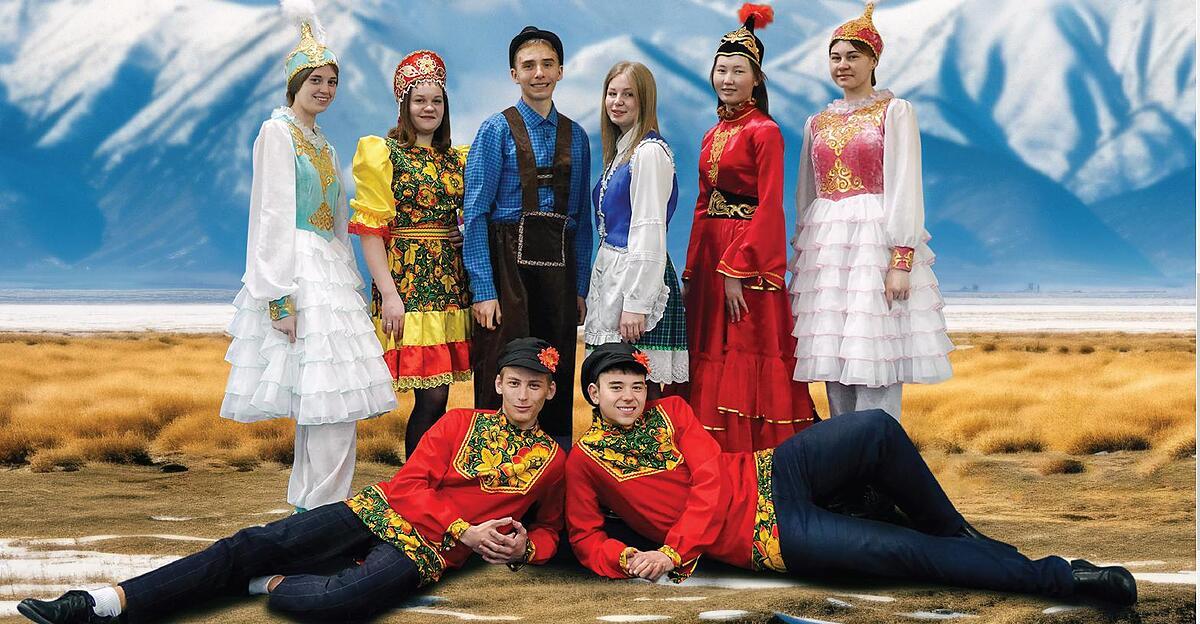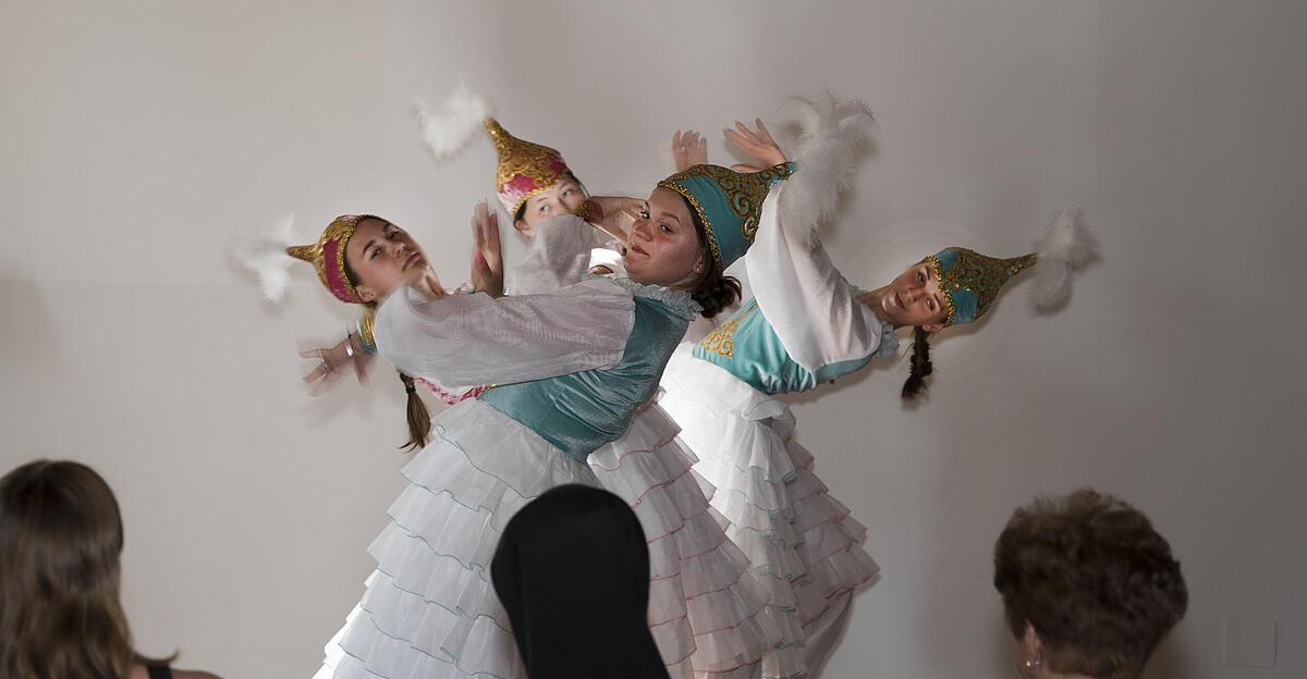 BRAUNAU. Acht Austauschschüler aus der Schule St. Lorenz in Korneewka zeigen kasachische Volkstänze